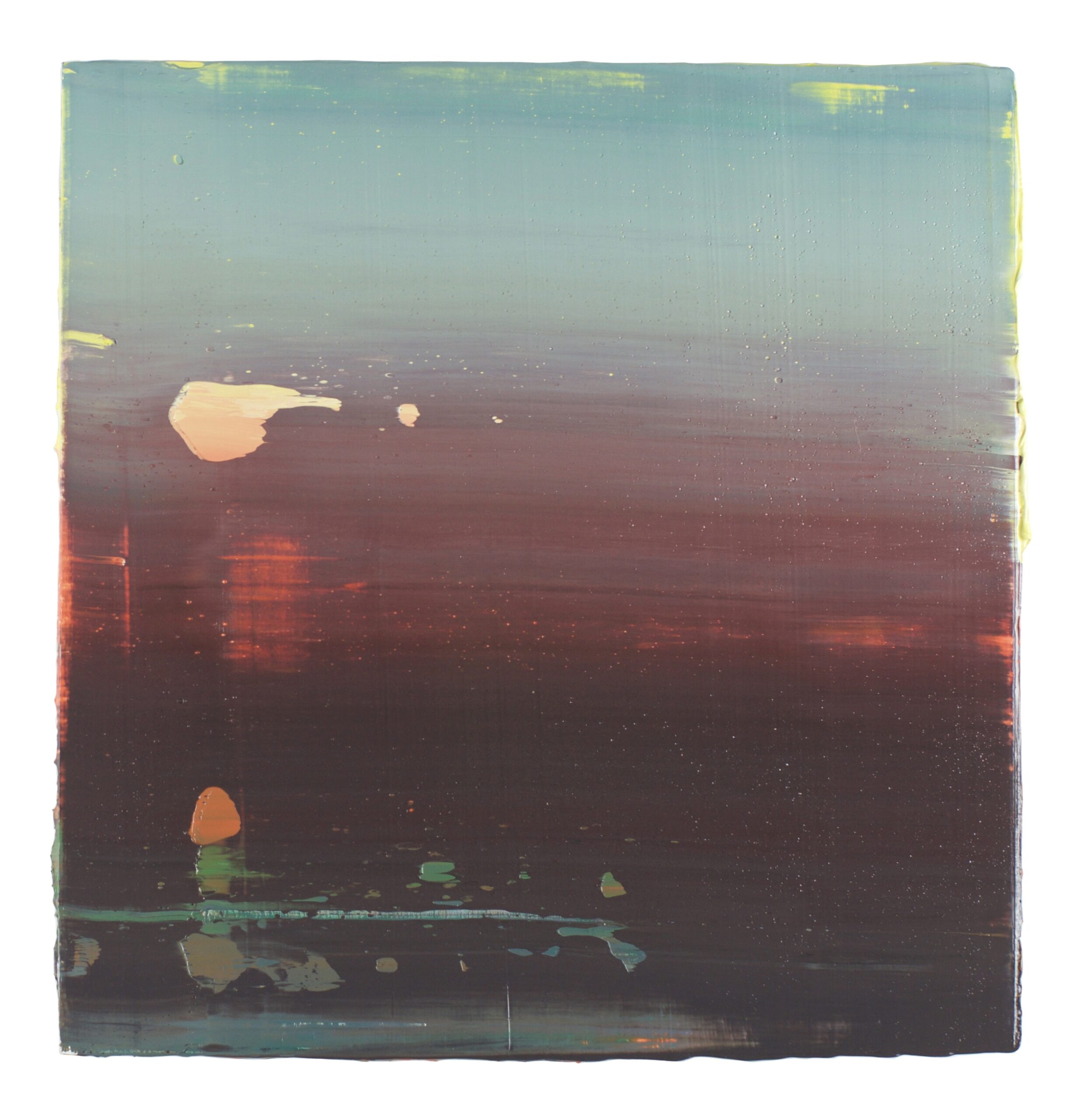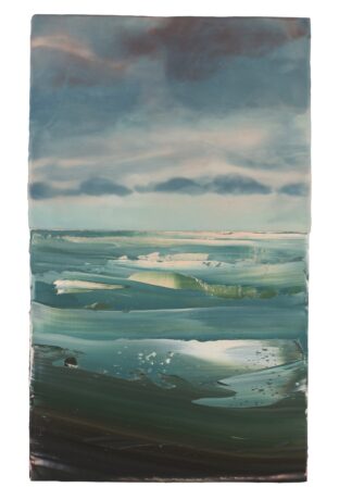 In die techniek van transparante lagen en doorschijnende kleuren legde Roder de verstilling van die monumentale Waddenzee vast.